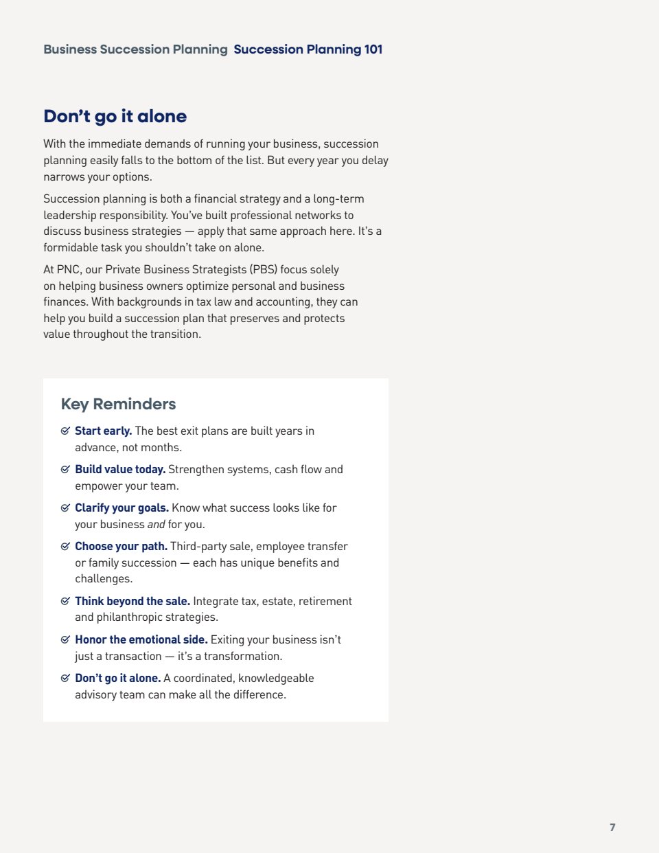 Served as writer on this thought leadership piece highlighting PNC Bank’s expertise in helping business owners plan for the transition of their business.