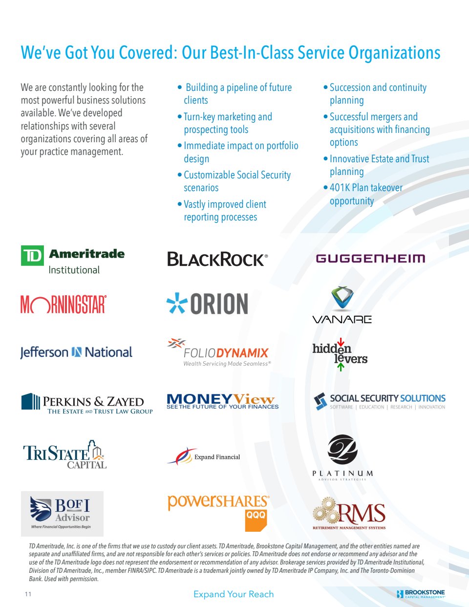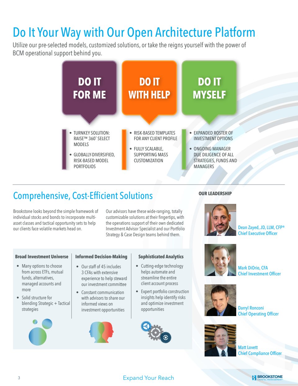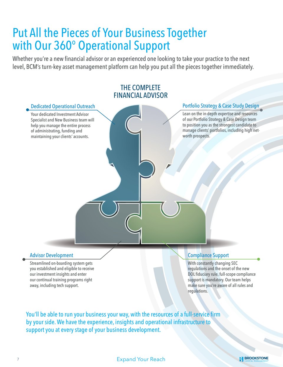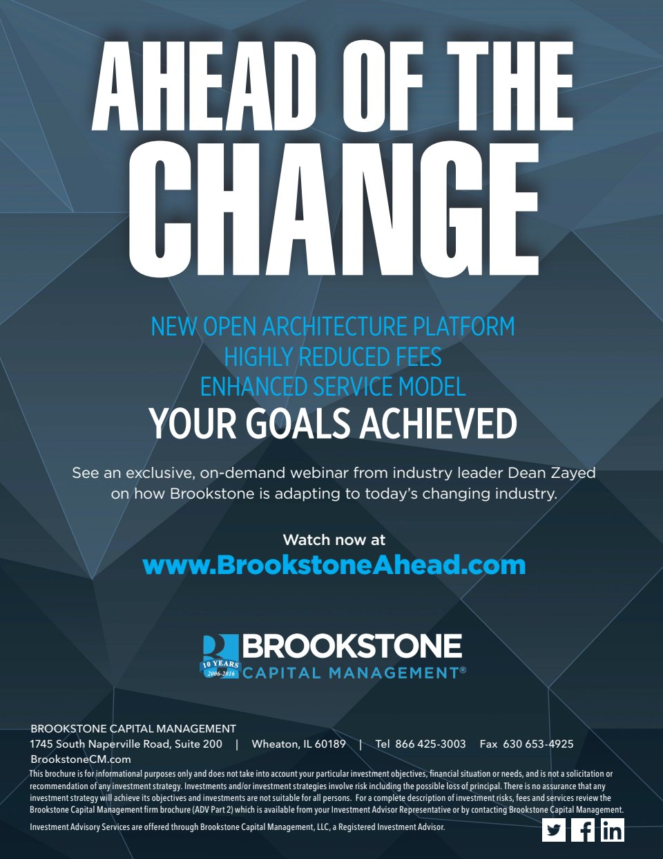 Provided writing, content strategy and project management duties in creation of advisor recruitment brochure.
