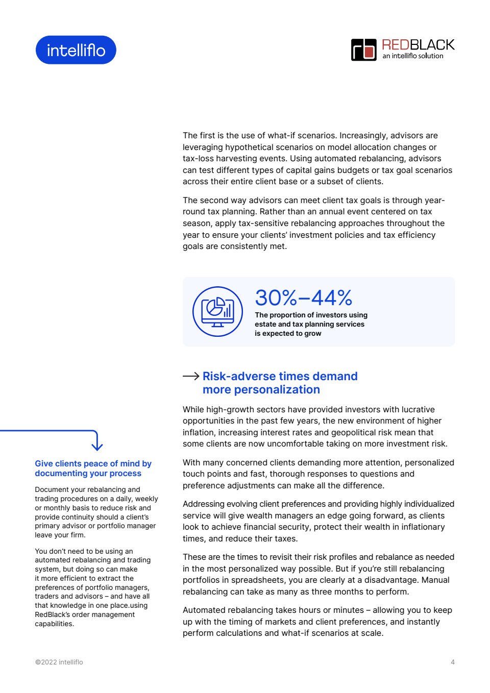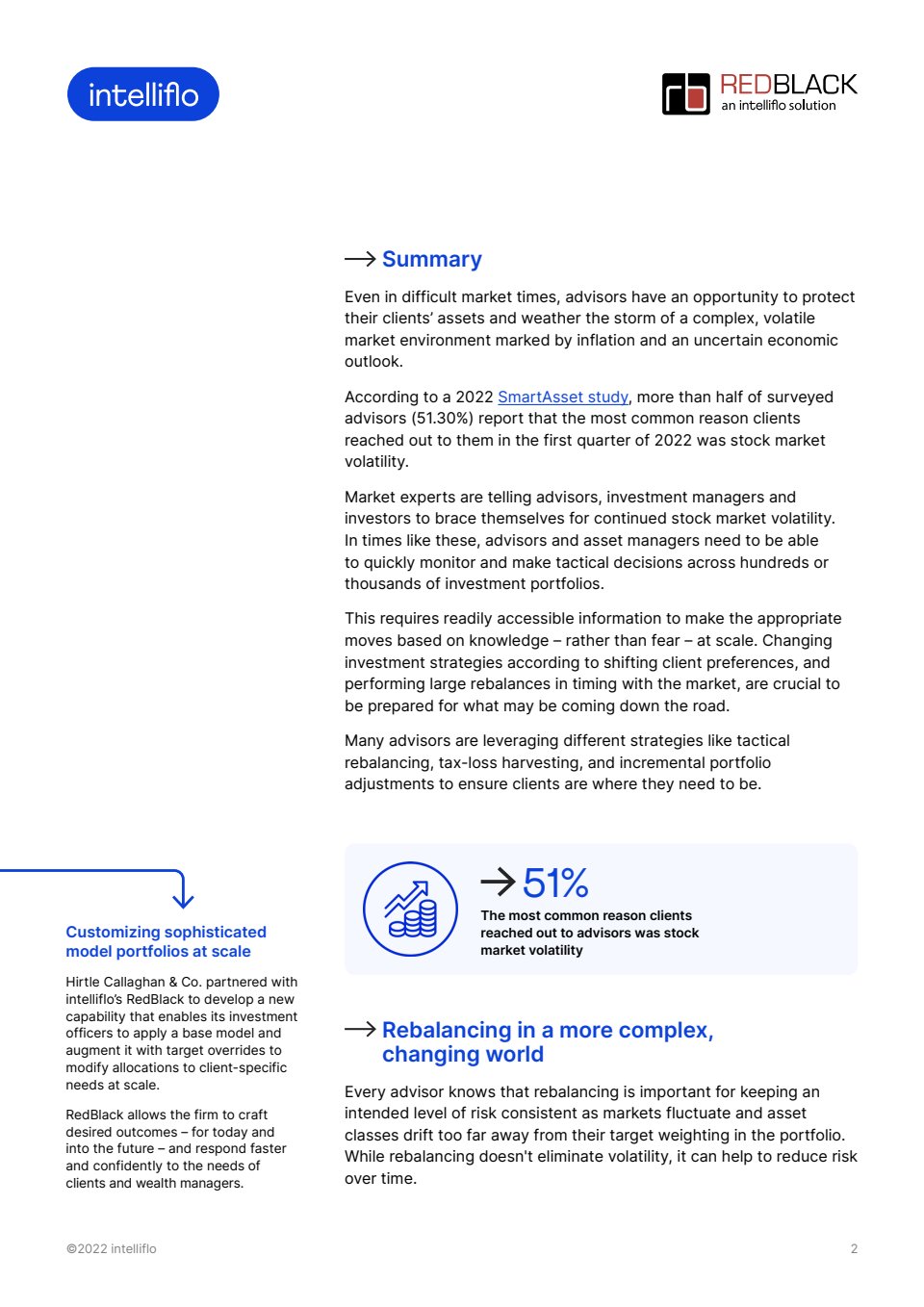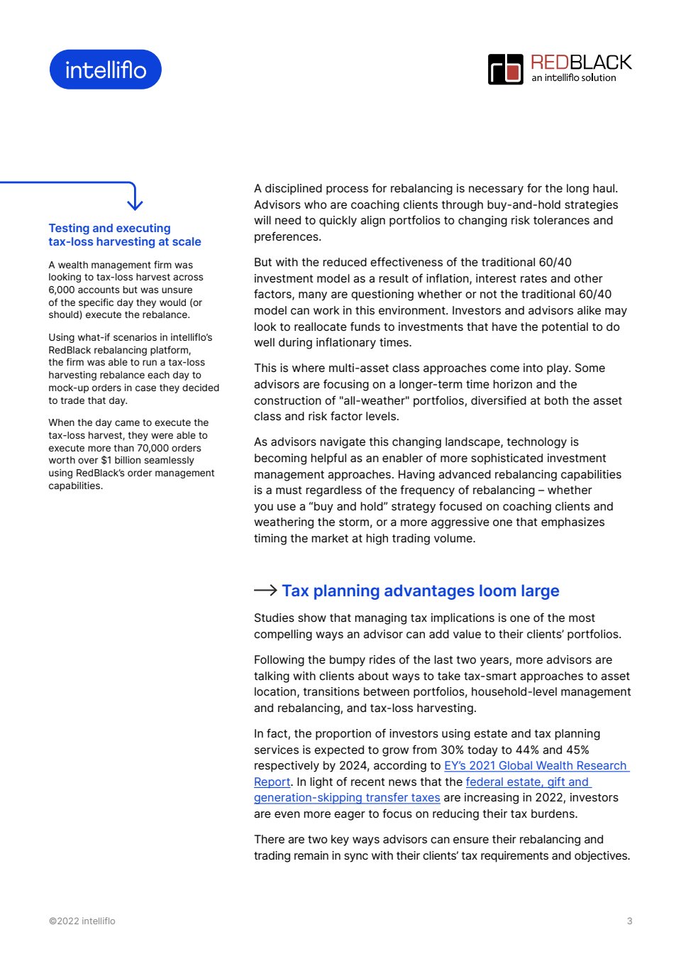 Served as editor and manager of freelance resources for this white paper describing advantages of automated trading and rebalancing.